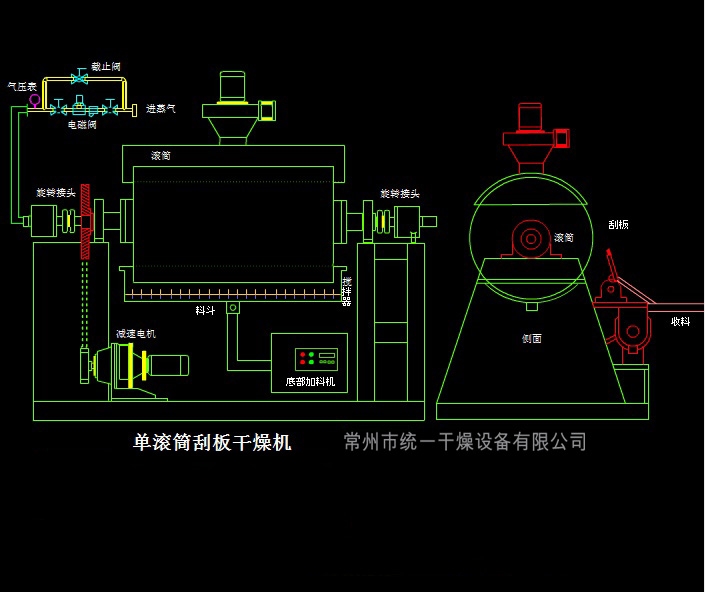 注:如客戶需要,可為客戶設(shè)計(jì)制造上部進(jìn)料雙滾筒干燥機(jī)。