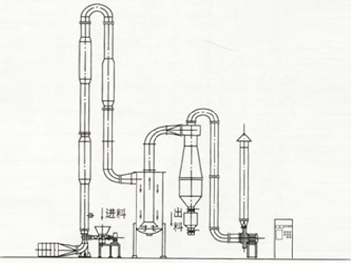 工作原理 在旋流干燥器內(nèi)氣流夾帶物料從切線方向進入,沿著內(nèi)壁形成螺旋線運動,物料在氣流中均勻分布與旋轉(zhuǎn)擾動,強化了干燥過程,凡能用氣流干燥的物料,旋轉(zhuǎn)氣流干燥器均為能適應,特別對增水性、顆粒小、不怕粉碎和熱敏性物料尤為適用。視物料特性,如粉塵回收可采用脈沖布袋除塵或水沫除塵,回收率可達99.99%。