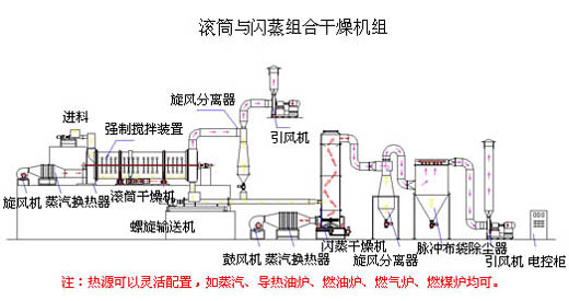 設(shè)備原理: 工作時(shí)熱空氣在風(fēng)機(jī)的驅(qū)動(dòng)下從滾筒的前端流入;濕物料通過(guò)加料器連續(xù)地加入滾筒中。在滾筒內(nèi),物料隨著滾筒的旋轉(zhuǎn)而不斷翻動(dòng)。同時(shí),滾筒內(nèi)專用攪拌裝置快速地將物料打碎,增大了有效干燥面積,使物料與氣流充分地接觸,物料中的水分被快速蒸發(fā)。干燥后的物料成了較松散物料從出料口排出。另一部分細(xì)粉隨氣流排出,通過(guò)分離裝置收集后與出料口處排出的物料匯合,并在輸料機(jī)的作用下進(jìn)入閃蒸干燥機(jī)中。在閃蒸干燥機(jī)中,物料再次被粉碎并與熱風(fēng)進(jìn)行熱交換,達(dá)到干燥程度和一定細(xì)度的產(chǎn)品被吹出分級(jí)裝置,物料在此過(guò)程中得到充分的干燥,保證了物料的質(zhì)量,干燥后的物料為均勻的粉狀,無(wú)需進(jìn)行粉碎,實(shí)現(xiàn)產(chǎn)量較大的連續(xù)性生產(chǎn)。