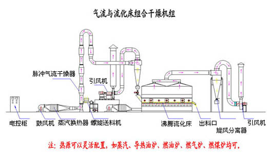 概述: 為了更大程度地發(fā)揮干燥設備的特點,我公司設計了氣流與流化床組合干燥機組,采用氣流干燥與沸騰流化床組合方式,有效地延長了干燥時間,提高了干燥效率,產(chǎn)品質量得到了很大改善。設備由空氣加熱系統(tǒng)、加料系統(tǒng)、脈沖氣流干燥主機、收粉系統(tǒng)、沸騰流化床、風機及控制系統(tǒng)等組成。